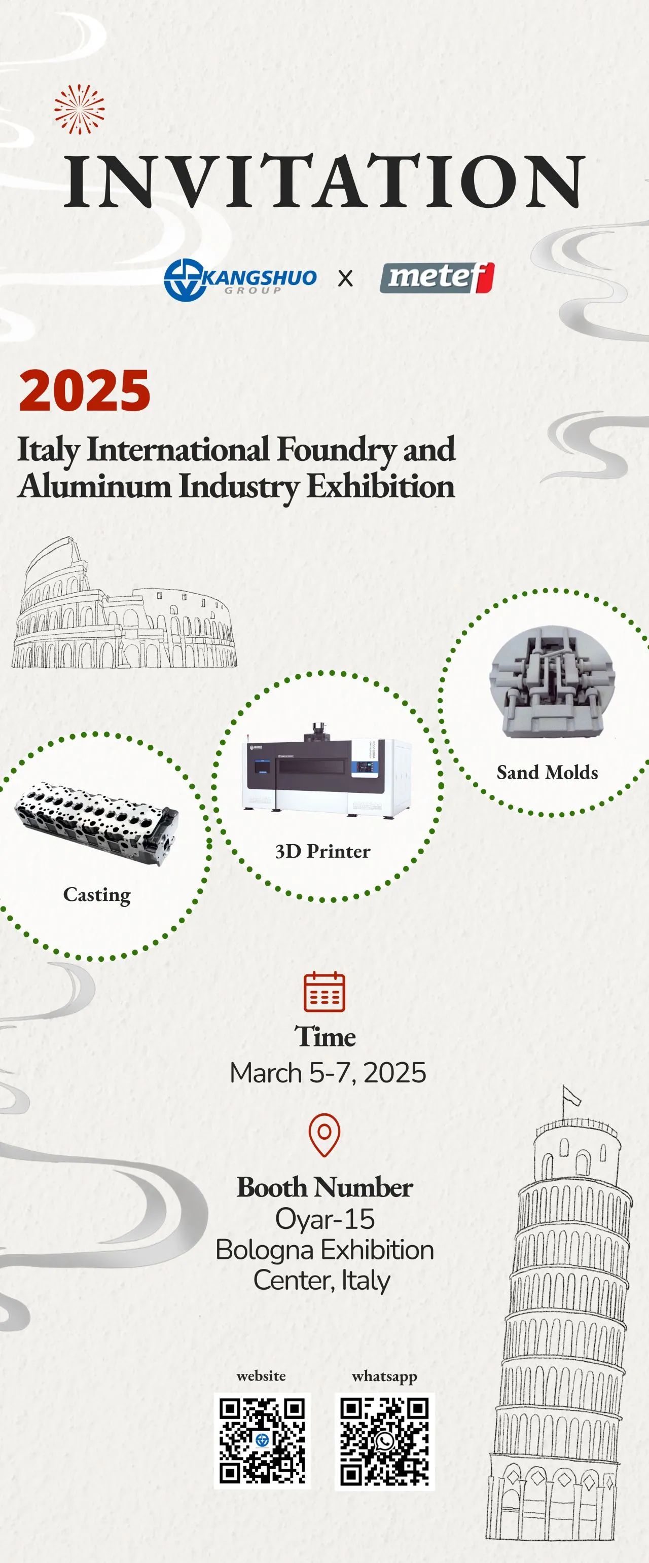 1.METEF:引領(lǐng)制造行業(yè)數(shù)字化變革 (2025/03/05-03/07)作為全球鑄造行業(yè)的頂級(jí)盛會(huì),意大利博洛尼亞鑄造展匯聚了來(lái)自世界各地的制造技術(shù)與解決方案供應(yīng)商??荡T集團(tuán)將攜最新砂型3D打印設(shè)備及鑄造一體化解決方案亮相展會(huì),向歐洲和全球客戶展示如何通過(guò)數(shù)字化技術(shù)推動(dòng)傳統(tǒng)鑄造行業(yè)的轉(zhuǎn)型升級(jí)。
