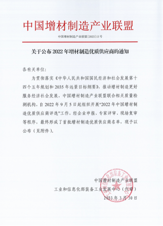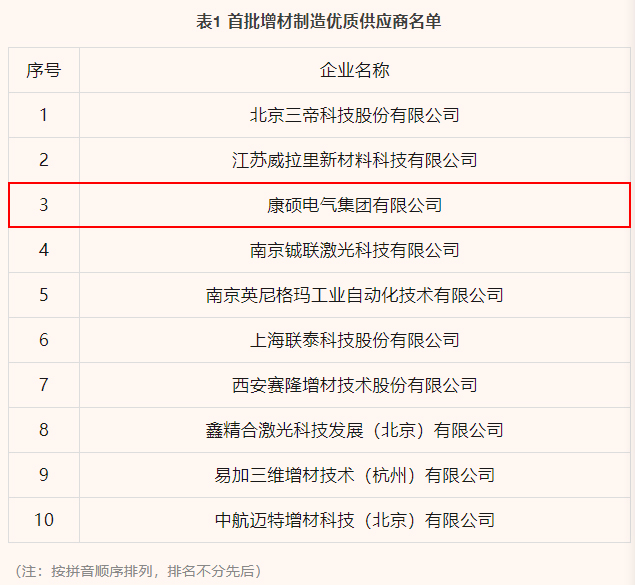 4月6日,中國增材制造產業(yè)聯(lián)盟發(fā)布,為貫徹落實《中華人民共和國國民經濟和社會發(fā)展第十四個五年規(guī)劃和2035年遠景目標綱要》要求,推動增材制造更好服務經濟社會發(fā)展,中國增材制造產業(yè)聯(lián)盟聯(lián)合相關質量檢測機構組織開展2022年中國增材制造優(yōu)質供應商評選工作,經企業(yè)報名、專家評審、現(xiàn)場復審等程序,康碩電氣集團有限公司成功入選2022年首批增材制造優(yōu)質供應商名單。