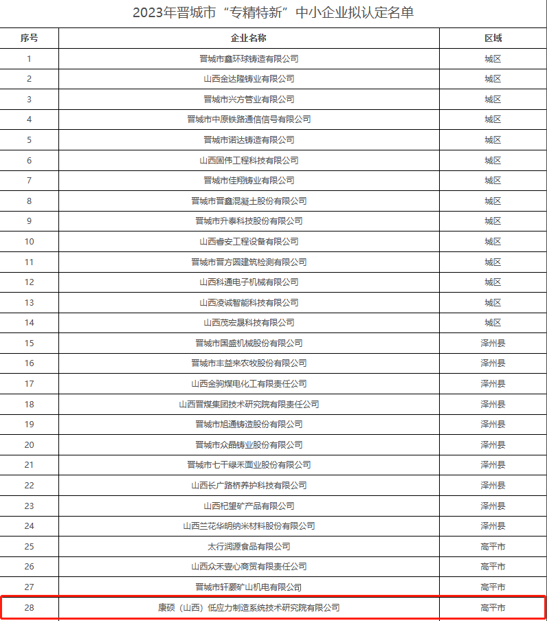 近日,晉城市中小企業(yè)發(fā)展促進(jìn)中心發(fā)布2023年市級(jí)“專精特新”中小企業(yè)名單公示。根據(jù)《關(guān)于印發(fā)<晉城市“專精特新”中小企業(yè)認(rèn)定管理辦法(試行)>的通知》(晉市企發(fā)〔2022〕52號(hào))和《關(guān)于開展2023年市級(jí)中小企業(yè)發(fā)展專項(xiàng)資金“專精特新”中小企業(yè)項(xiàng)目申報(bào)工作的通知》(晉市企發(fā)〔2023〕7號(hào)),康碩(山西)低應(yīng)力制造系統(tǒng)技術(shù)研究院認(rèn)定為2023年晉城市“專精特新”中小企業(yè)。