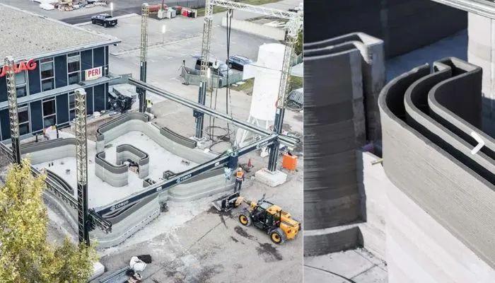 △水泥3D打印(C3DP)的一個例子:奧地利的第一座3D打印建筑(圖片來源:PERI 3D Construction GmbH)